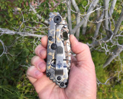From a limited Prometheus run featuring a CPM20CV blade with a frog skin finish (MARKED M. STRIDER ) , the scales are milled and anodized Aluminum show side and a Titanium Frog Skin Lock side. The fit and finish on this piece is excellent , centered blade with a snappy detent.