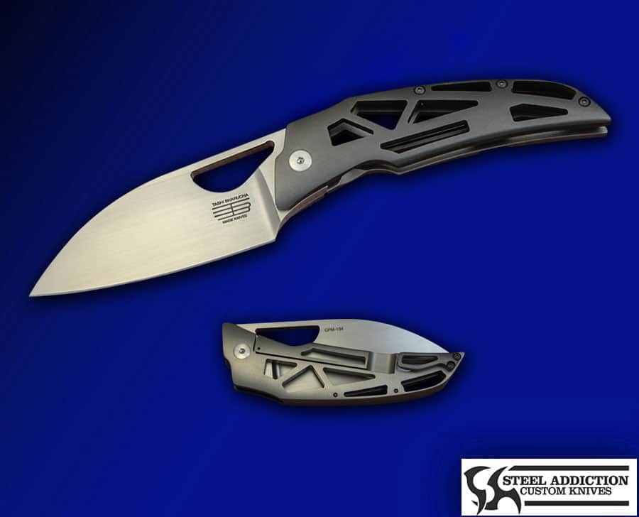 This is one of Tashi’s latest designs ! The Church features a hand rubbed CPM 154 blade , the scales are heat colored Zirconium on the show side with Titanium on the lock side. with. The fit and finish is superior , Sporting Tashi’s deep carry pocket, and weighs in at 5 OZ.
