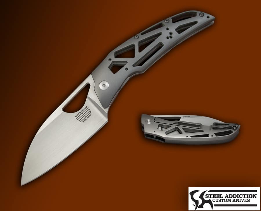 This is a One Off Church ! Featuring Minute Of Angle Holes in the Zirconium frame. The blade is 3/16 hand rubbed CPM 154 , the scales are heat colored Zirconium on the show side with Titanium on the lock side. with. The fit and finish is superior , Sporting Tashi’s deep carry pocket, and weighs in at 5 OZ.