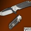 This is one of Tashi’s latest designs , debuted at Blade Show 2016 ! The ALIEN features a hand rubbed CPM 154 blade , the scales are orange peeled and blasted Titanium. The overall fit and finish is excellent ! The blade is running on caged bearings, the flipping action is effortless . weighs in at 5.7 OZ.