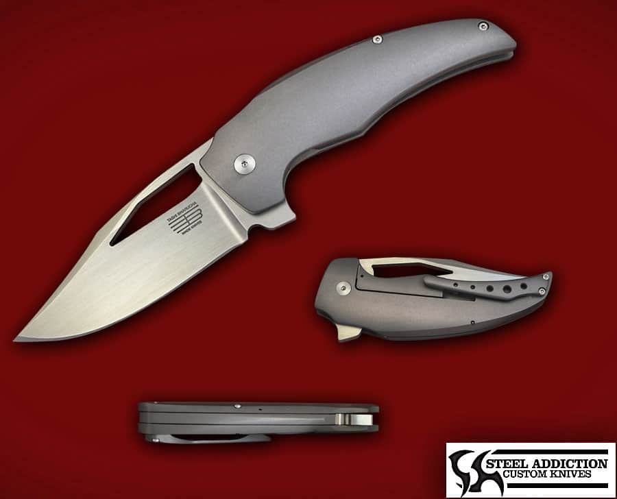 This is one of Tashi’s latest designs ! The STARDUST XLF features a hand rubbed CPM 154 blade , the scales are titanium with Tashi’s new clip design and full domed titanium back spacer. The fit and finish is top of the line , clipped for tip up carry and weighs in at 8.2 OZ.