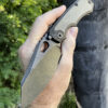 A one off piece offering from Tashi featuring a Sam Lurquin EXPLOSION Forged Damascus blade on caged bearings , the frames are Heat colored Timascus. Accented by a full length polished Zirconium back spacer, pivot rings and a sculpted Heat colored Timascus clip. A flowing design that feels great in the hand and flips like a rocket , comes with satin pouch and Makers embroidered case. Please Check Out Our Video 😉