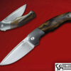 Tashi’s Legacy series expresses his gratitude for the inspiration and guidance he received from some of the greatest makers in the knife industry ! The first in the Legacy series the Onion Legacy offers a hand rubbed RWL 34 blade riding on bearings , the frames are sculpted Titanium with Laser Etching. The Titanium frames are accented by polished Mokuti Pivot Rings , back spacer and clip. Check out the Video 😉 , the action speaks for itself. Comes with Satin slip sheath and Makers leather case.