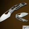 This piece offers a hand rubbed satin RWL-34 blade running on bearings , the frames are Titanium with Copper Fat Carbon Fiber inlays. Accented by a custom pivot with Zirconium pivot rings and back spacer . Fantastic fit and finish ,comes with Makers case and D.O.B.