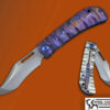 This is a rare dress Variant ! Sporting a satin blade with thumb disc opener , the bolsters and clip are heat colored ZIRCUTI with Black G10 scales. The build on this piece is Top Tier , snappy detent with bank vault lock up.