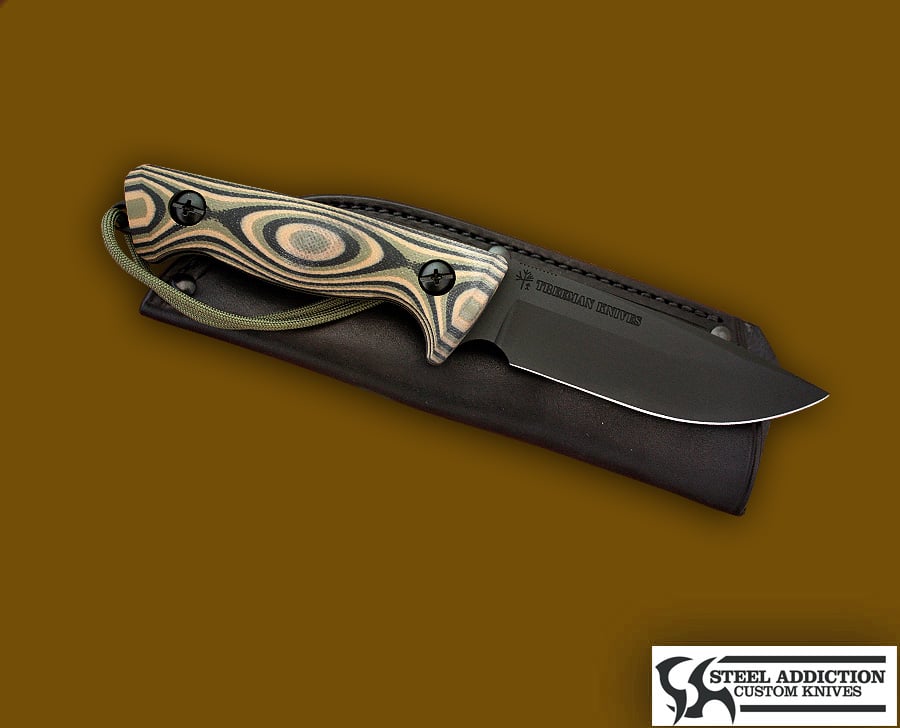 Treeman Knives Recon Hunter has a full tang construction and comes with a right hand leather sheath , the fit and finish is excellent and weighs in with sheath at 12.2 OZ.