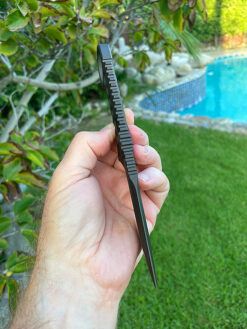 The Ronin features a A2 Midnight Bronze Cerakoted blade with integral construction ,the stock is 3/8″ at the handle and 1/4″ at the blade. The grinds and the overall fit and finish are excellent ,feels great in the hand comes with custom Kydex sheath.